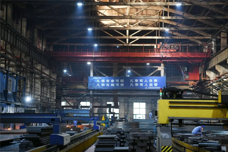 ↑哈電電機(jī)工人在板材下料生產(chǎn)現(xiàn)場(chǎng)進(jìn)行作業(yè)(新華社記者王建威9月2日攝)。