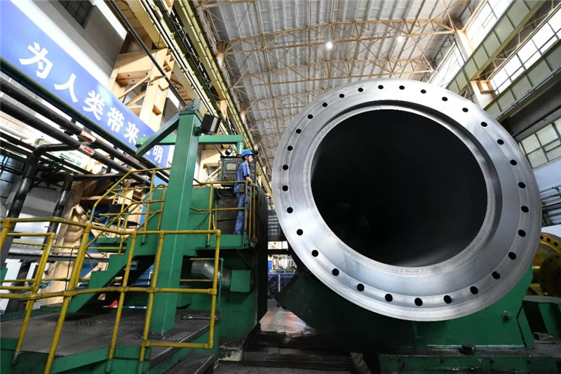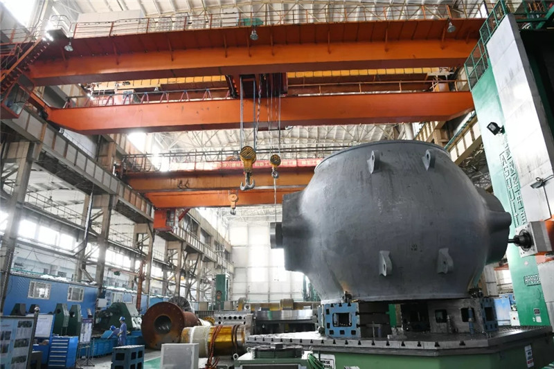 ↑哈電電機(jī)水電分廠車間在生產(chǎn)水輪機(jī)球閥(新華社記者王建威9月2日攝)。
